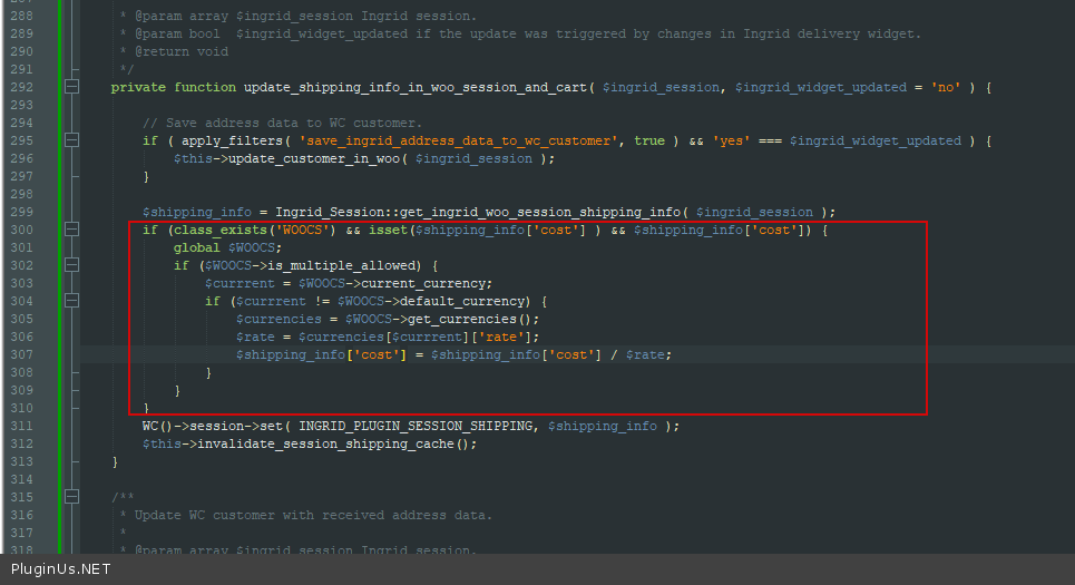 if (class_exists('WOOCS') AND isset($shipping_info['cost']) AND $shipping_info['cost']) { global $WOOCS; if ($WOOCS->is_multiple_allowed) { $currrent = $WOOCS->current_currency; if ($currrent != $WOOCS->default_currency) { $currencies = $WOOCS->get_currencies(); $rate = $currencies[$currrent]['rate']; $shipping_info['cost'] = $shipping_info['cost'] / $rate; } } }