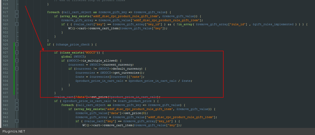 $product_price_in_cart_calc = $product_price_in_cart_calc / $rate;