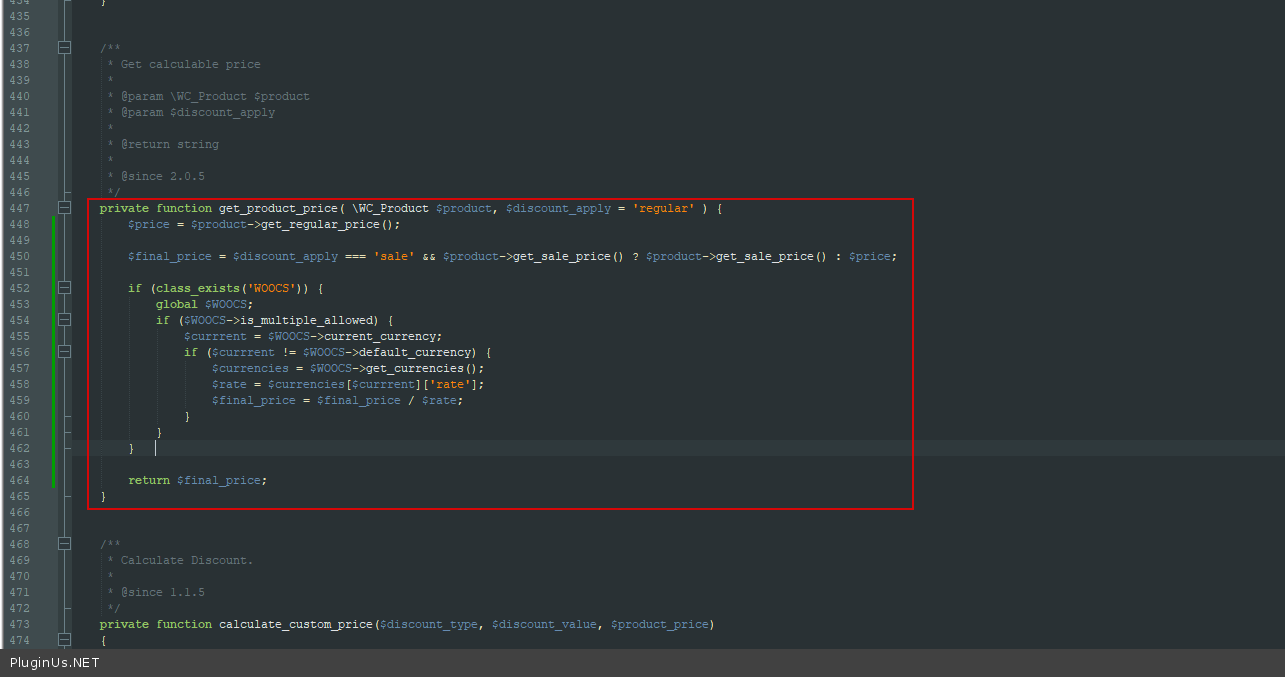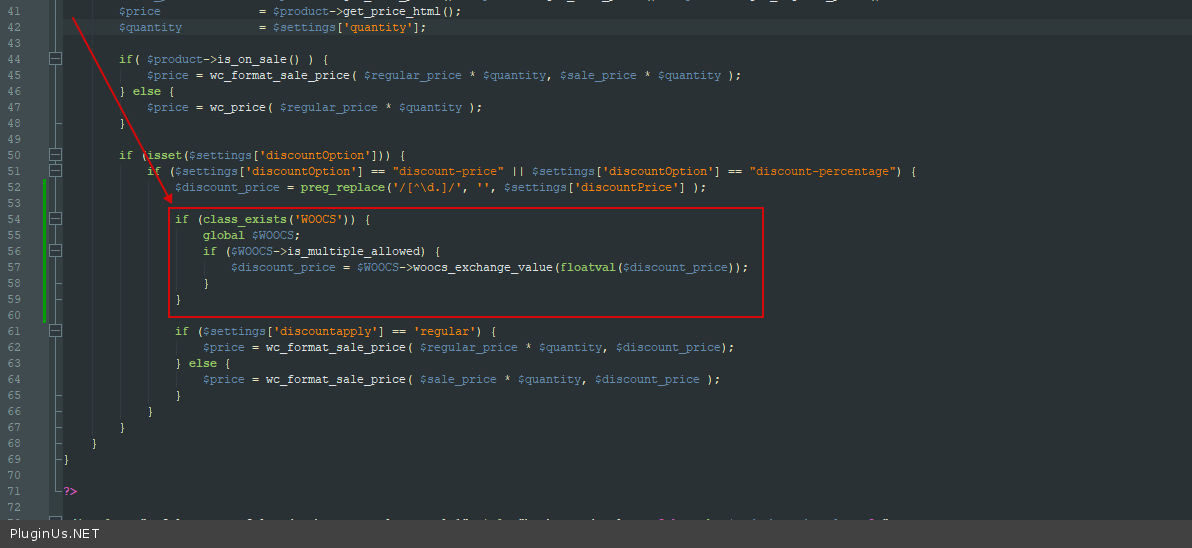 if (class_exists('WOOCS')) { global $WOOCS; if ($WOOCS->is_multiple_allowed) { $discount_price = $WOOCS->woocs_exchange_value(floatval($discount_price)); } }